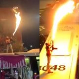 Un rappeur tire des lance-flammes dans la rue pour un clip